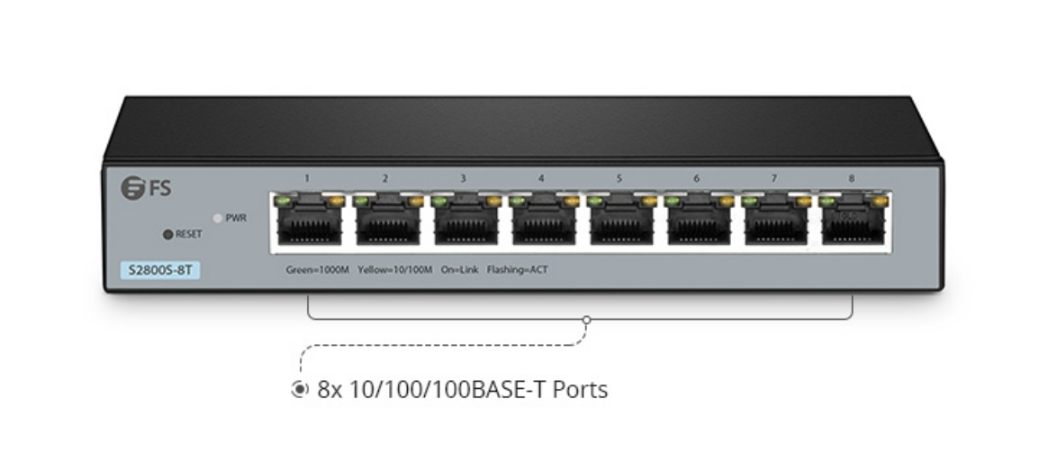 | S2800S-8T | S2800S-8T, 8-Port Gigabit Ethernet L2+ Switch, 8 x Gigabit RJ45, Fanless |